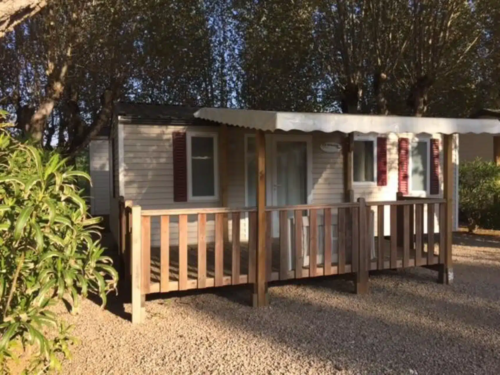 - Covered wooden terrace with garden furniture, 1 sun lounger.