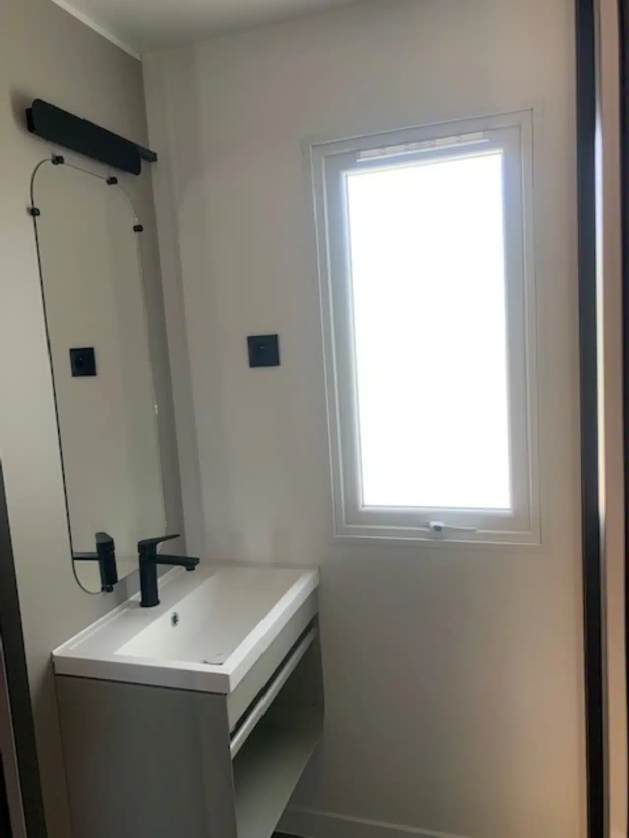 - Bathroom with shower and washbasin.