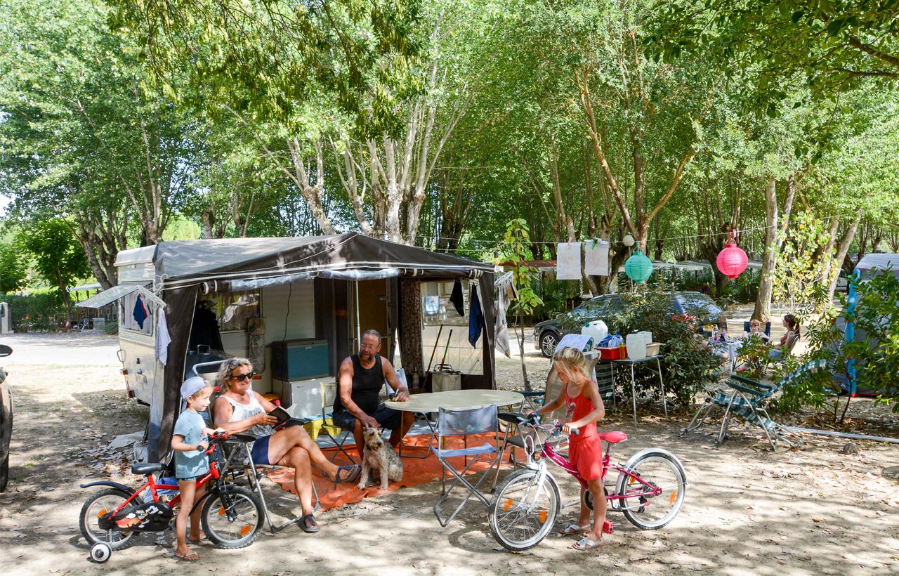 At the heart of a 1.8 ha site, near the Caramy river, you can pitch up your tent or install your caravan of camper van in the peaceful setting of our small-scaled campsite. Each camping pitch is shaded by big trees and delimited by low hedges. They surface between 80 and 100 m². Campers can make use of electric hook-up and water taps are scattered all over.