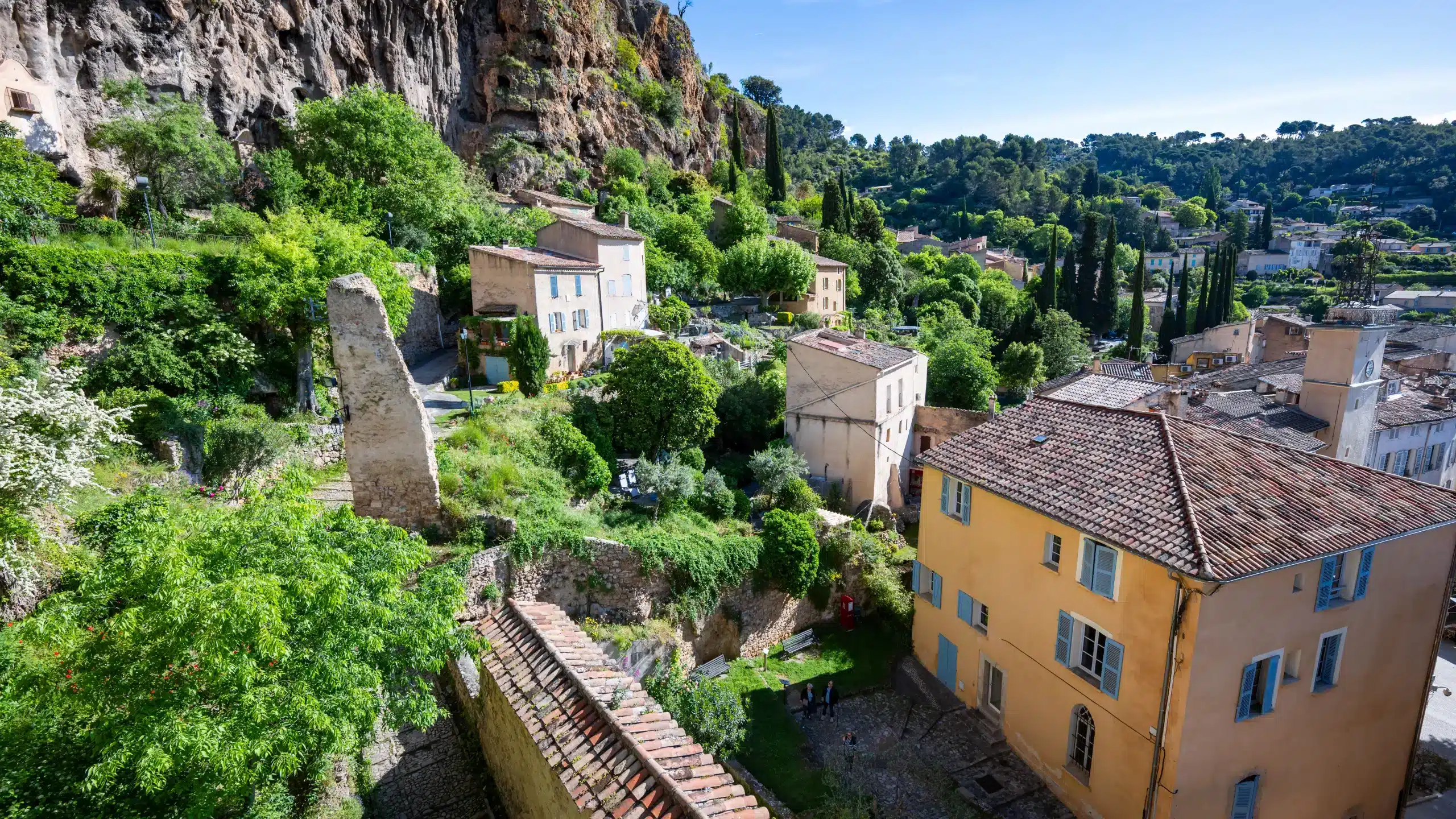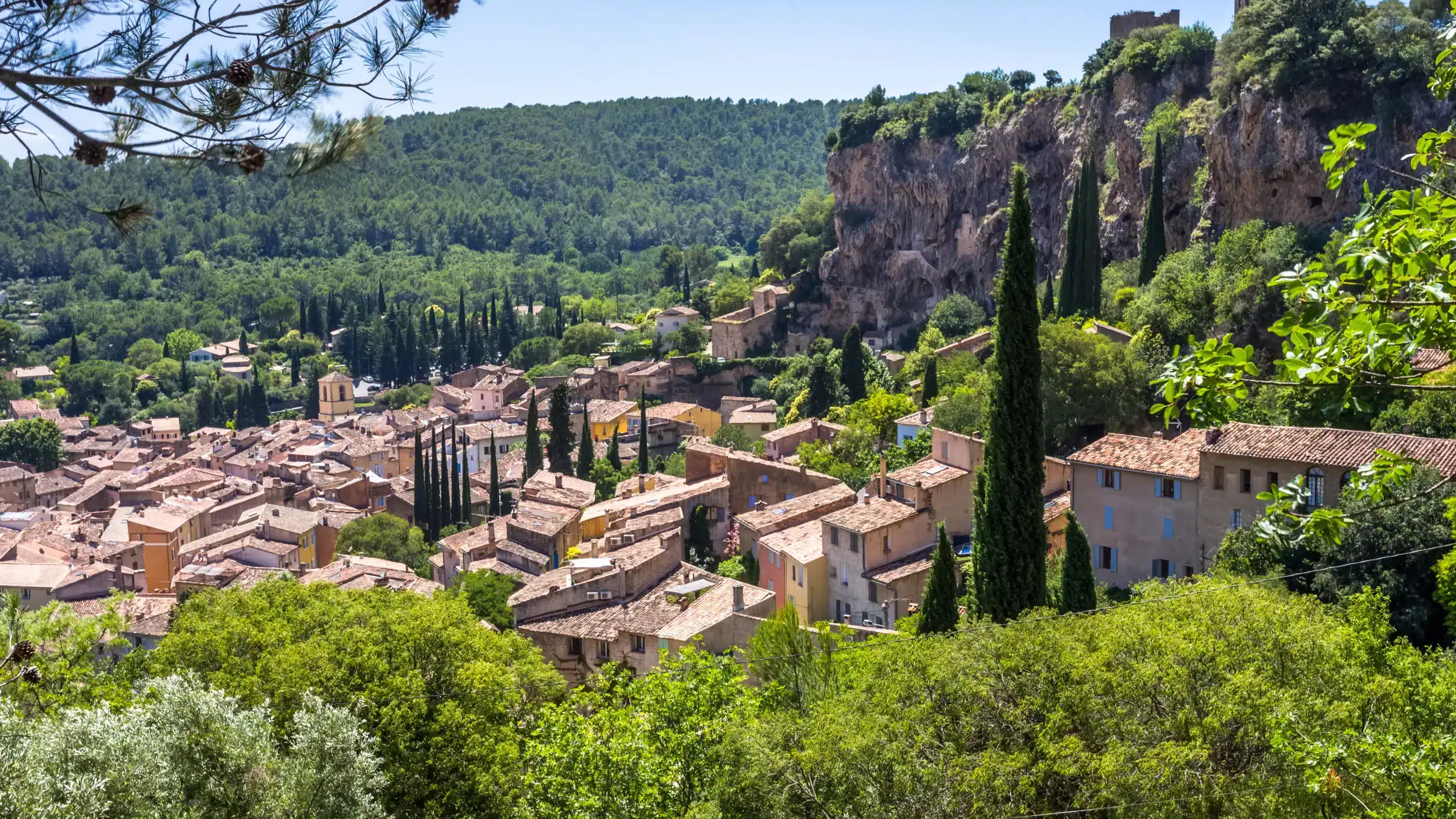 Village typiquement provençal et un haut lieu de pèlerinage de la Provence chrétienne, Cotignac se dresse au pied d’une haute falaise de 80 mètres. Depuis le rocher, on admire une vue spectaculaire sur les collines et l’arrière-pays varois.  Les habitations troglodytes, anciens refuges lors des invasions barbares, se fondent ici naturellement dans le décor. Au cœur du vieux village, on aime flâner dans les ruelles bordées de maisons en pierre des XVIe et XVIIe siècles, se poser à l’ombre des platanes centenaires et aux abords des fontaines pour profiter de l’animation des terrasses des cafés et restaurants.